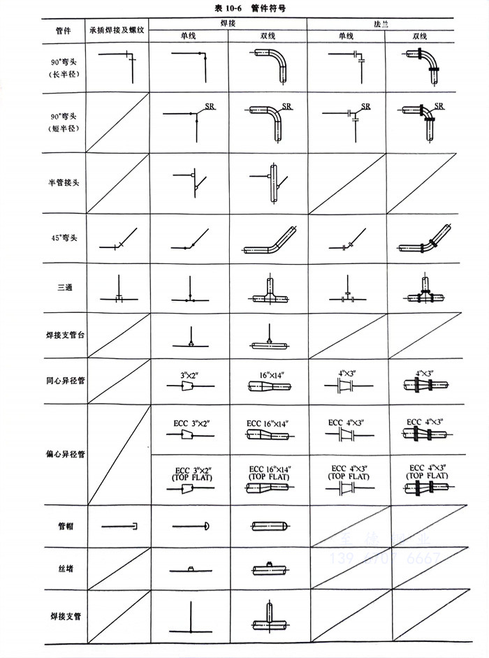 管道(dao)(dao)布置(zhi)平(ping)面圖(tu)和(he)管道(dao)(dao)軸(zhou)測圖(tu)常用圖(tu)例見表10-6~表10-12。也可參考SH/T 3052或HG 20519所提供的圖(tu)例。